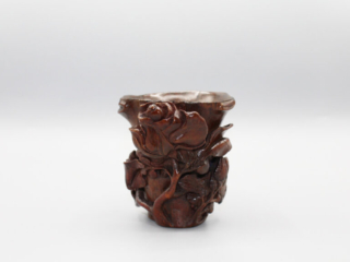 657. Chinese Bamboo Libation Cup with rose carving