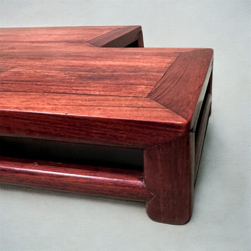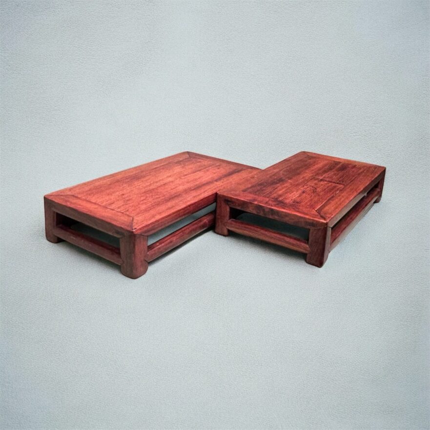 一对中国硬木脚凳,长方形造型,直腿以矮枨相连,工艺精美。