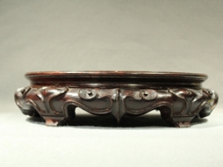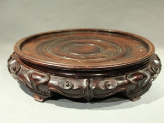 Early 19th century circular stand carved in one piece of hongmu, the apron with stylised ruyi.
