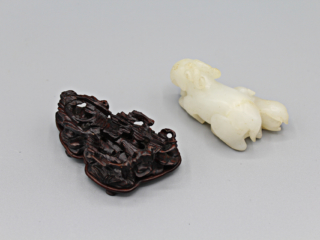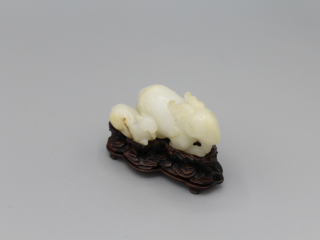 十八世紀 雕白玉雙羊