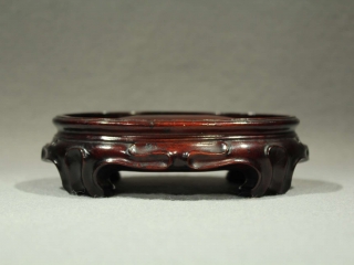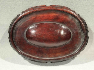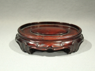 Early 19th century Chinese oval stand carved in hongmu within stylised ruyi apron.