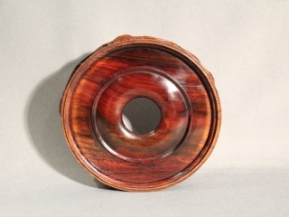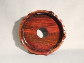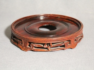 19th century Chinese stand carved in hongmu, circular top above an apron with panels depicting stylised orchids, feet as ruyi